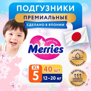 - Merries Подгузники Merries XL, 40 шт