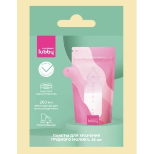 Lubby Пакеты для хранения грудного молока, 200 мл, 15 шт