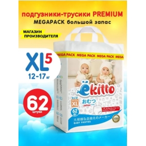 Подгузники-трусики EKITTO Premium Mega pack XL62 12+ кг