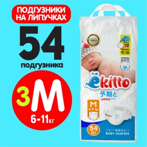Подгузники на липучках EKITTO PREMIUM M54 6-11 кг