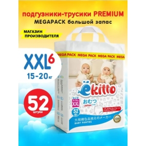 Подгузники-трусики EKITTO Premium Mega pack XXL52 15+ кг