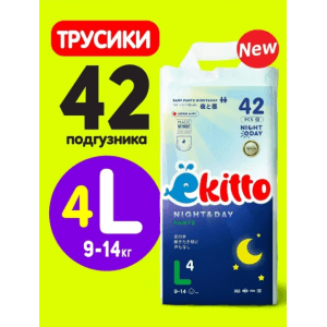 Подгузники-трусики EKITTO Night-Day L42 9-14 кг