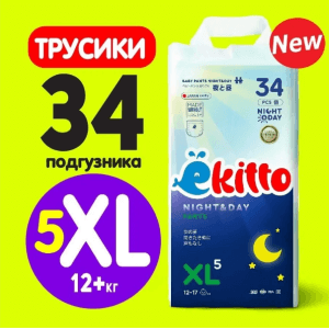 Подгузники-трусики EKITTO Night-Day XL34 12-17 кг