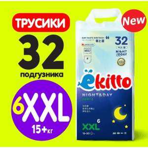 Подгузники-трусики EKITTO Night-Day XXL32 15-20 кг