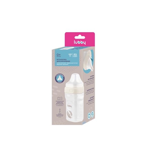 Lubby бутылочка силиконовая соска широк горло 0+ 240 мл