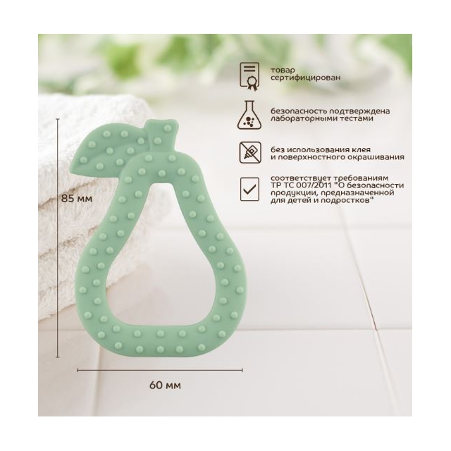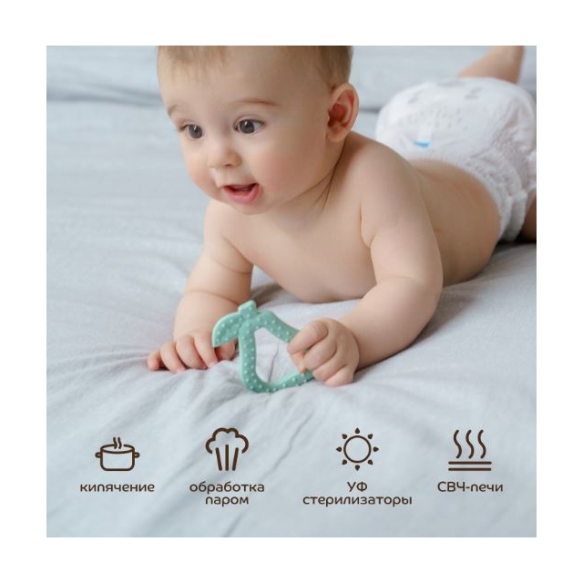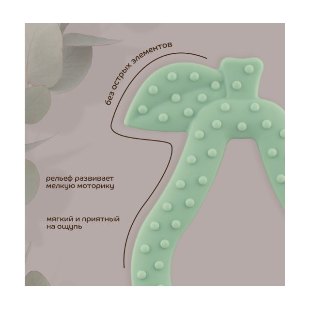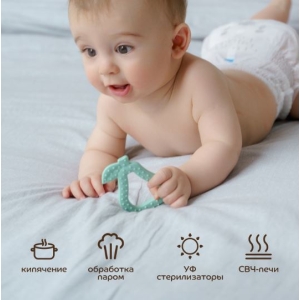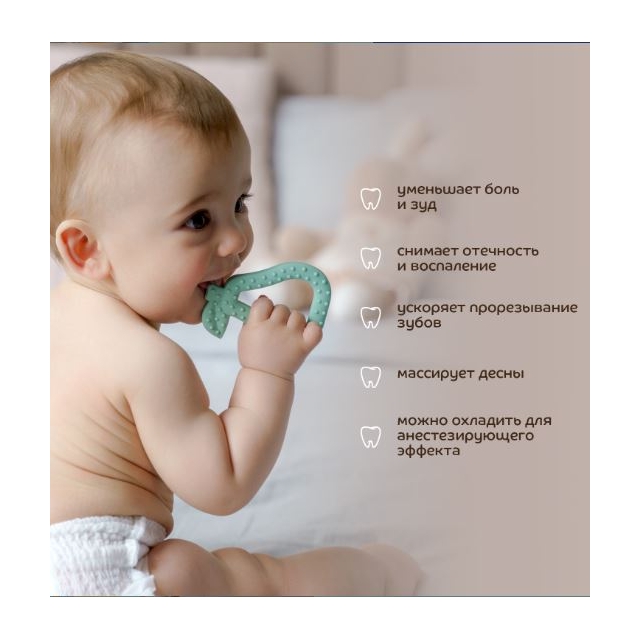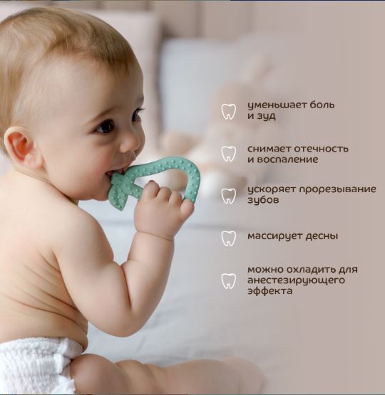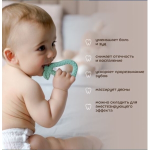 Современный трендовый дизайн для модных мам и малышей. Прорезыватель поможет уменьшить неприятные ощущения во время прорезывания зубов. Подходит для использования с первых стадий прорезывания зубов. Для достижения дополнительного анестезирующего эффекта можно положить прорезыватель в холодильник на 10 минут. Благодаря рельефным поверхностям успакаивает и массирует раздраженные десна, способствует развитию мелкой моторики. Изготовлен 100% из безопасного пищевого силикона. Гипоаллергенный, без вкуса и запаха. Удобная форма для захвата детской ручкой. Расцветка подходит мальчикам и девочкам.