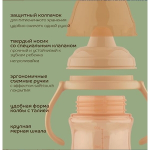 Поильник оснащен прочным полипропиленовым носиком, устойчивым к первым зубкам ребенка. Особый силиконовый клапан обеспечивает непроливаемость данной модели поильника. Съемные ручки эргономичной формы удобны для мамы и малыша. Поильник легкий и не бьющийся. Объем в 300 мл оптимален в использовании. Мерная шкала позволяет контролировать количество жидкости. Колпачок защищает носик от загрязнений, что позволяет брать поильник на прогулку. Изготовлен из безопасных качественных материалов. Трендовый дизайн и модная цветовая гамма подойдут как мальчикам, так и девочкам.