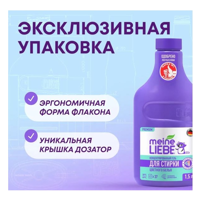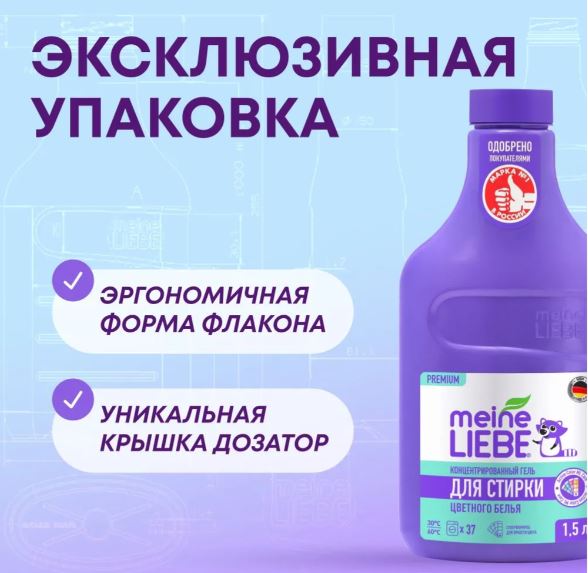 Концентрированный гель для стирки Meine Liebe со специальной формулой Active Color ML Care - это эффективное и экономичное средство, разработанное специально для бережной стирки цветного белья.