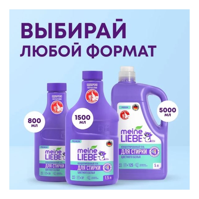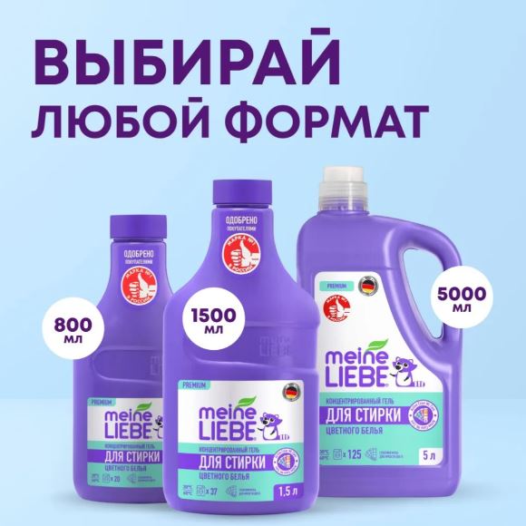 Концентрированный гель для стирки Meine Liebe со специальной формулой Active Color ML Care - это эффективное и экономичное средство, разработанное специально для бережной стирки цветного белья.
