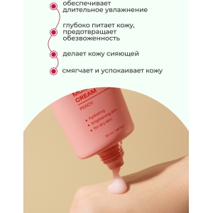 Крем для лица с экстрактом персика обеспечивает пролонгированное увлажнение и помогает улучшить цвет лица, повышает эластичность кожи. Гиалуроновая кислота увлажняет. Пептидный комплекс глубоко питает кожу, выравнивает микрорельеф. Пантенол и экстракт алоэ смягчают и успокаивают кожу.