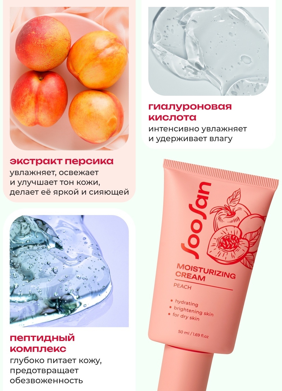 SOOSAN крем Moisturizing cream with Peach для лица 50 мл