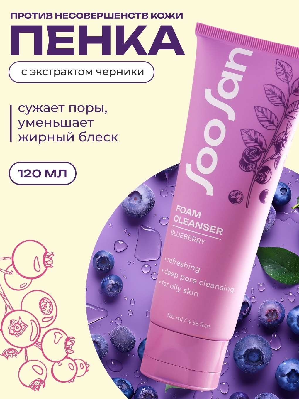 SOOSAN Foam Cleanser with Blueberry пенка 120 мл