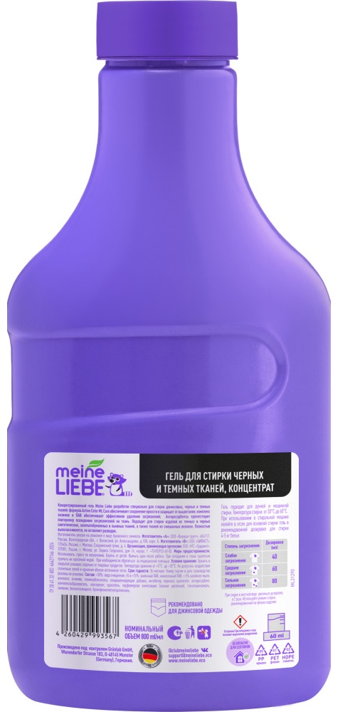 MEINE LIEBE Гель для стирки черных и темных тканей, концентрат, 800 мл