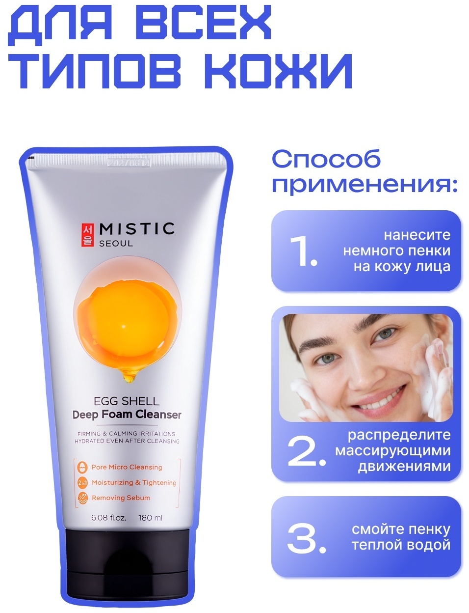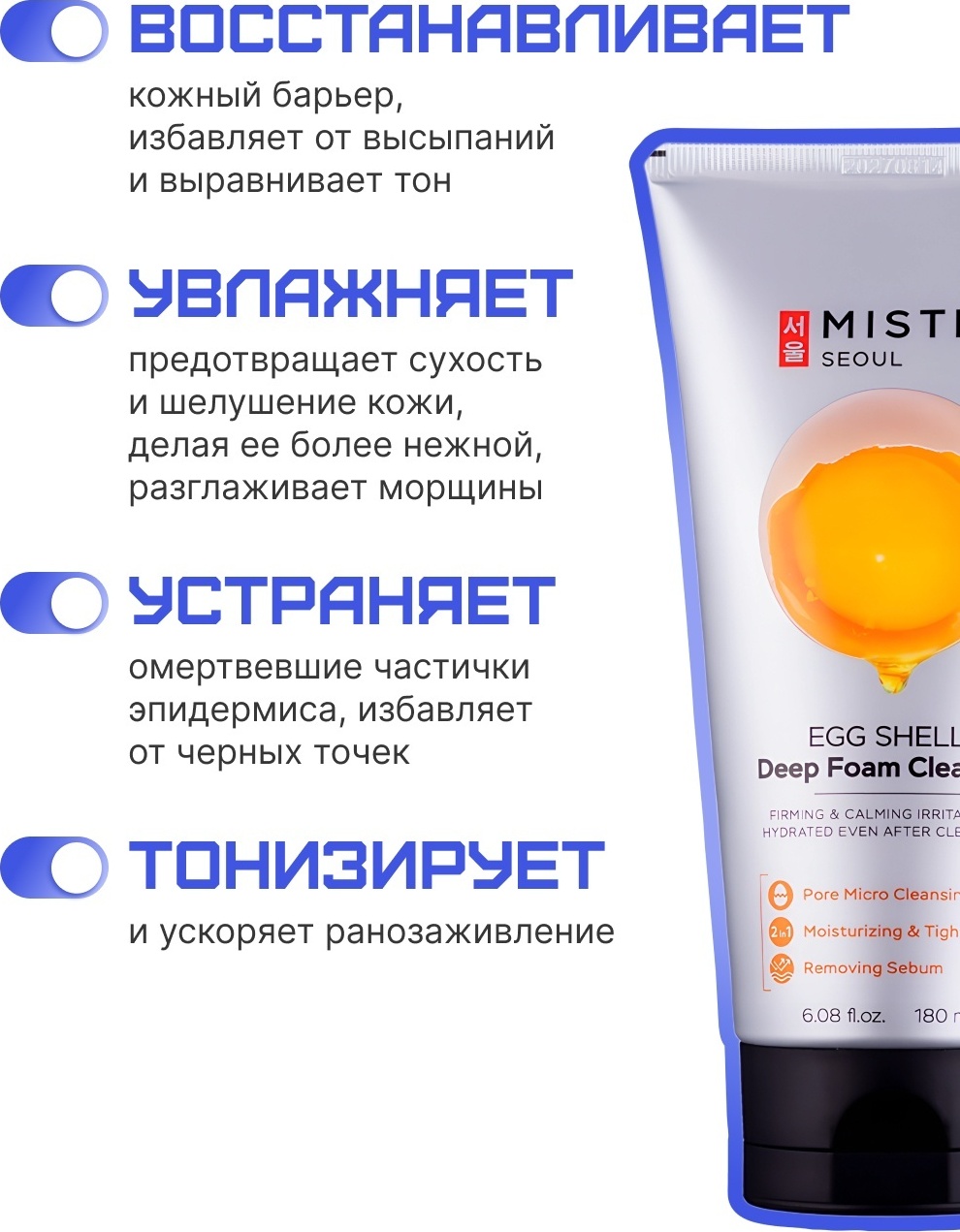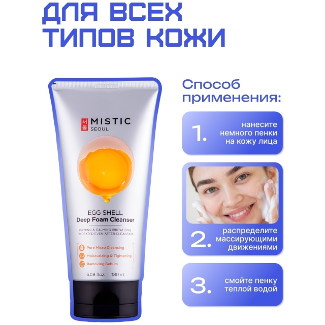 MISTIC EGG SHELL White & Yolk Deep Foam Cleanser пенка 180 г.