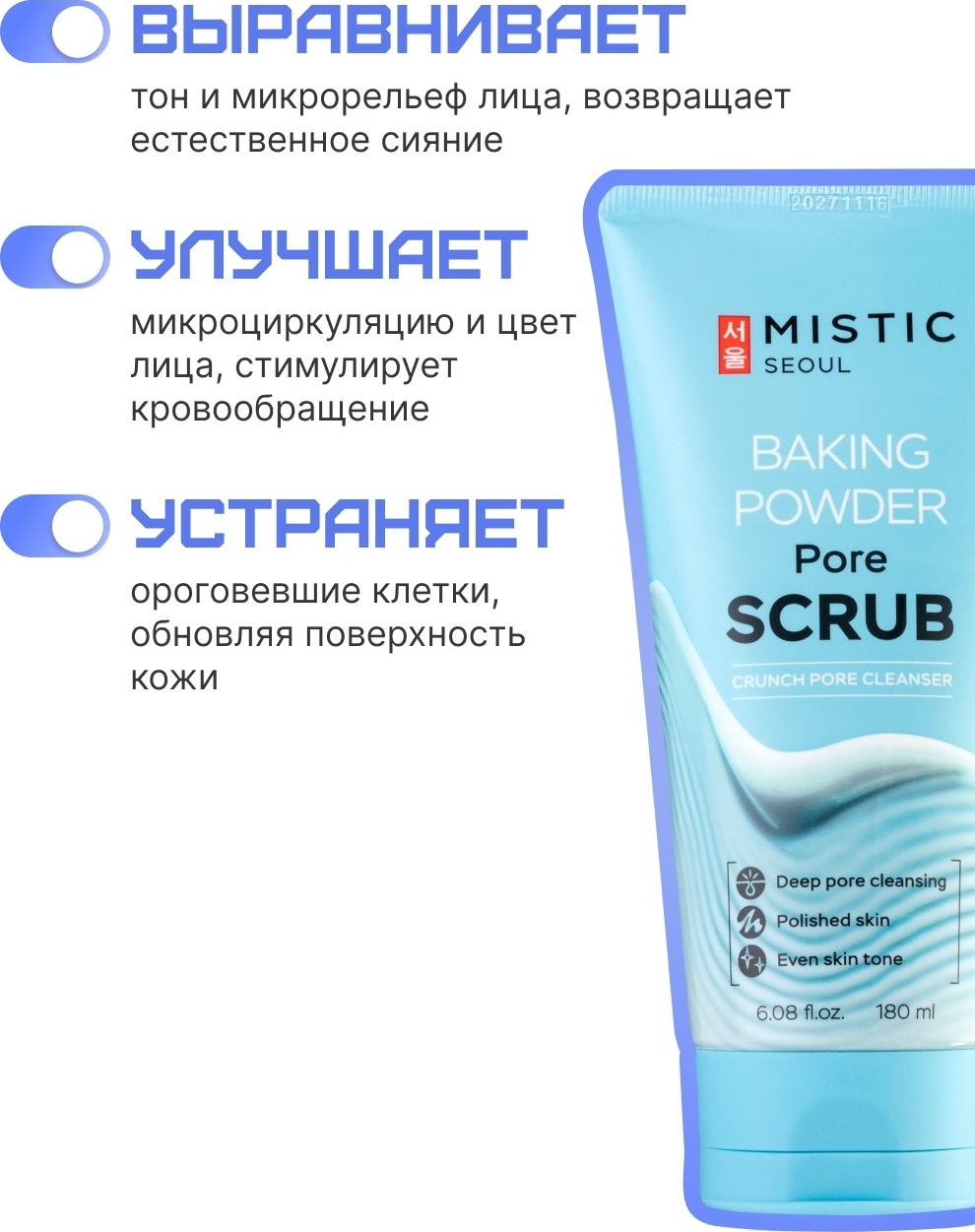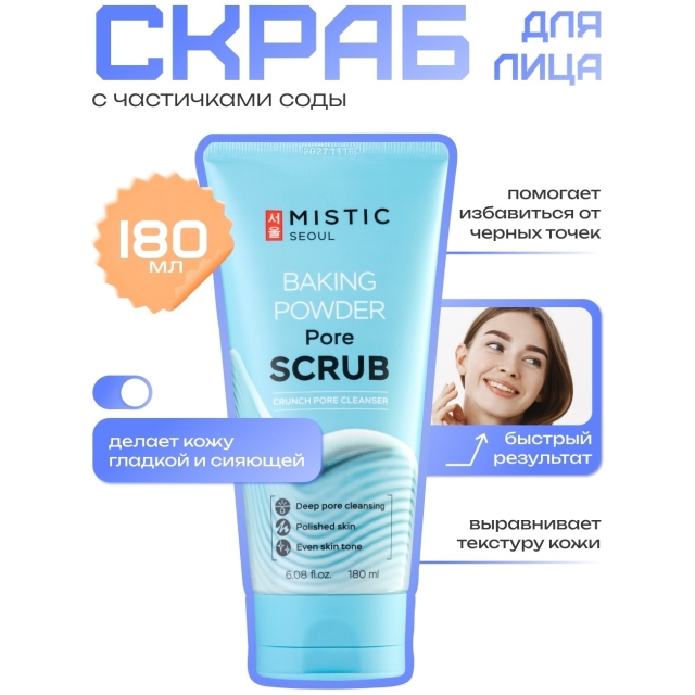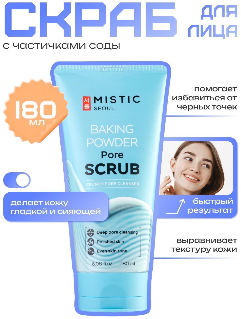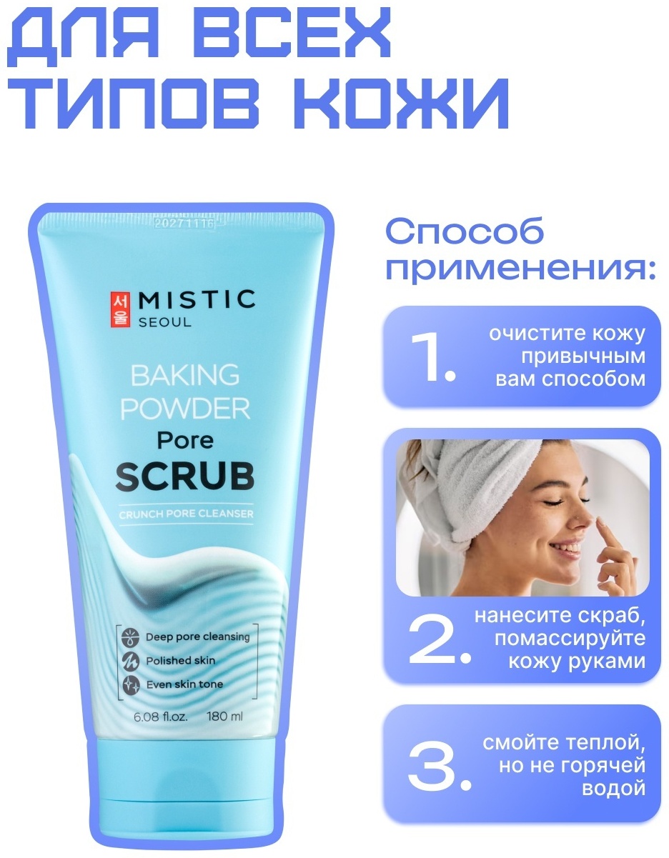 Скраб-бальзам с содой мягко отшелушивает и очищает поры, удаляет черные точки и сужает поры. Подходит для всех типов кожи и ежедневного ухода. Производство — Корея.