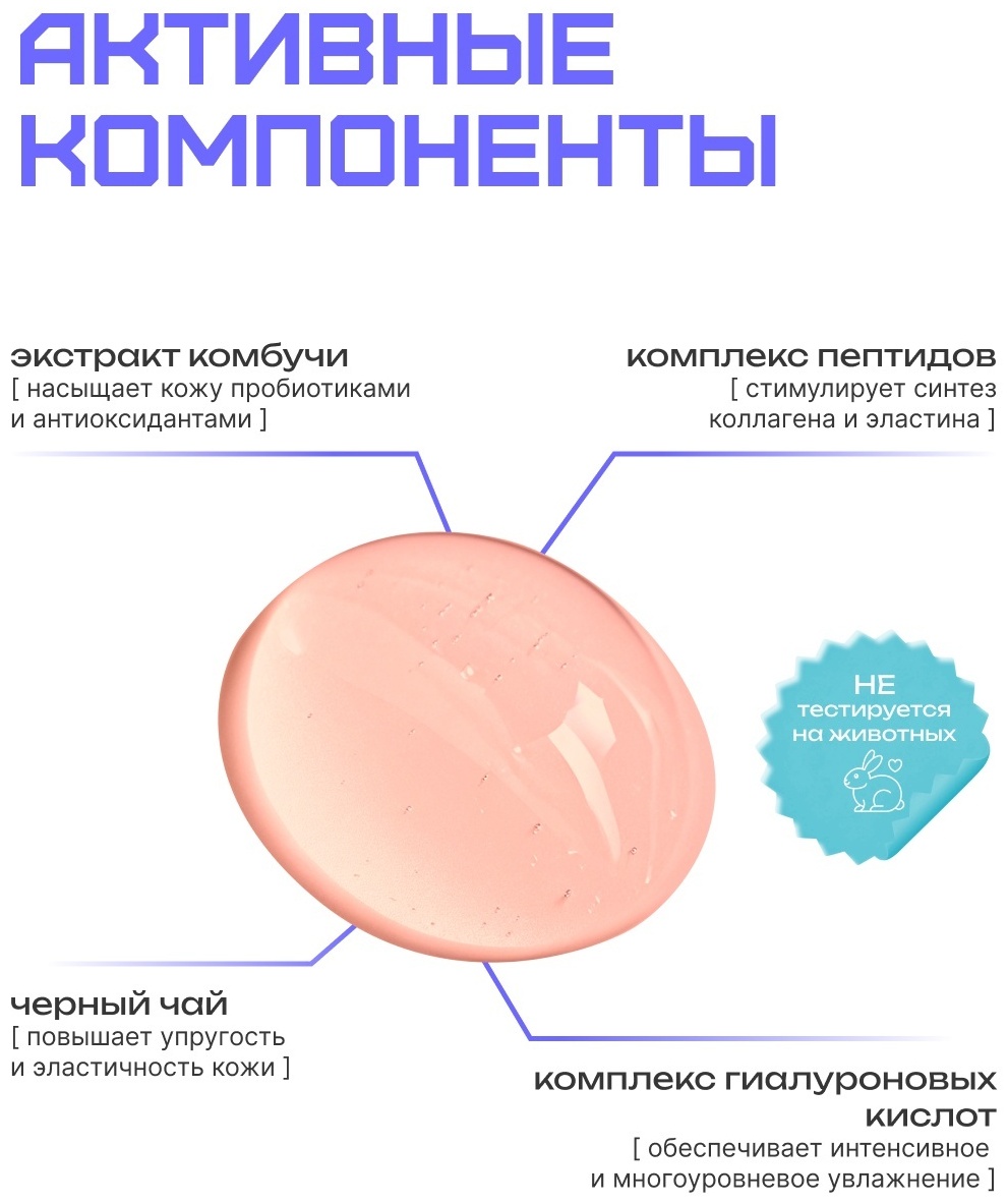 Омолаживающий тонер с экстрактом комбучи замедляет процессы старения, способствует выработке собственного коллагена и эластина, придает коже сияние и здоровый вид. Комплекс гиалуроновых кислот, входящий в состав, интенсивно увлажняет и борется с обезвоживанием кожи. Гидролизованный коллаген питает и смягчает кожу. Комплекс пептидов разглаживает морщины, делает кожу более упругой и подтянутой. В результате использования ваша кожа выглядит молодой и свежей.