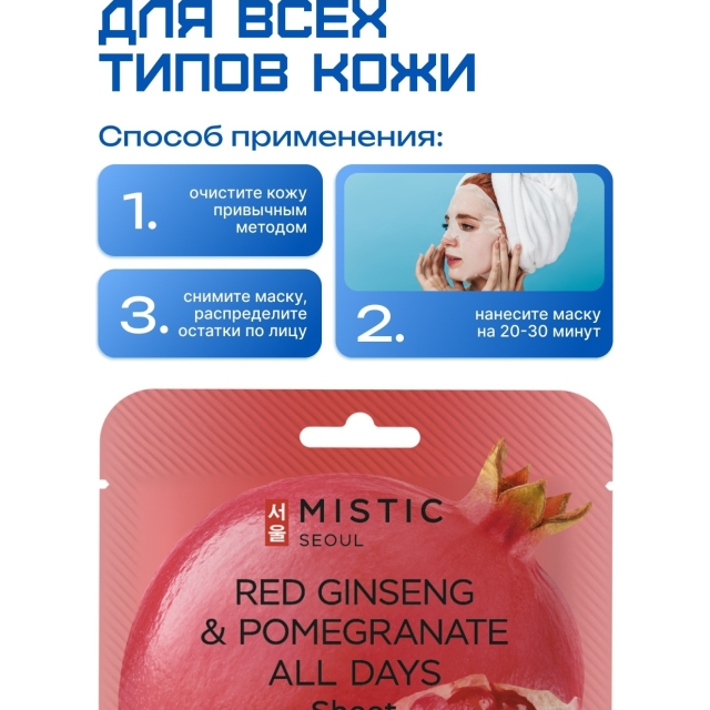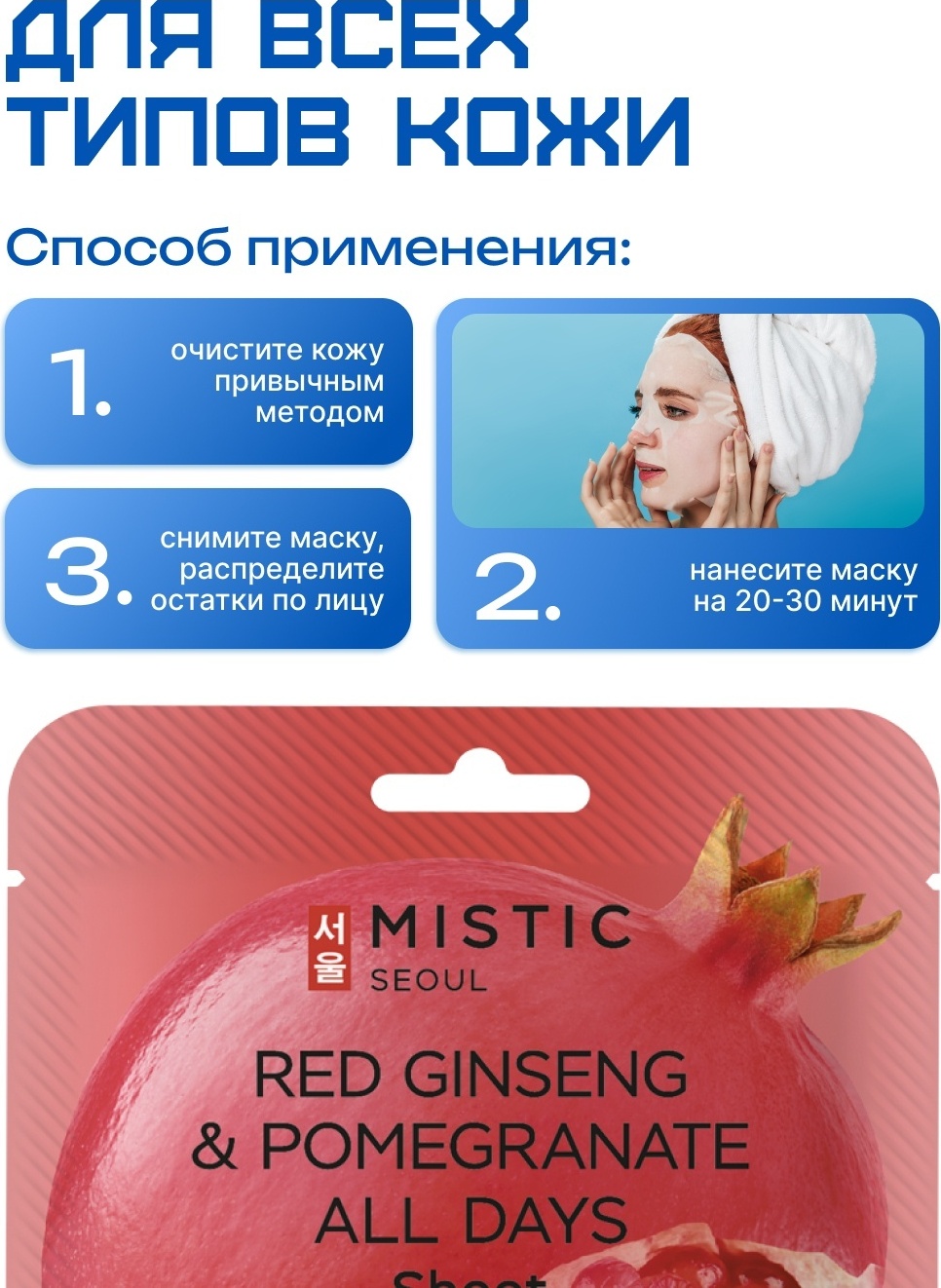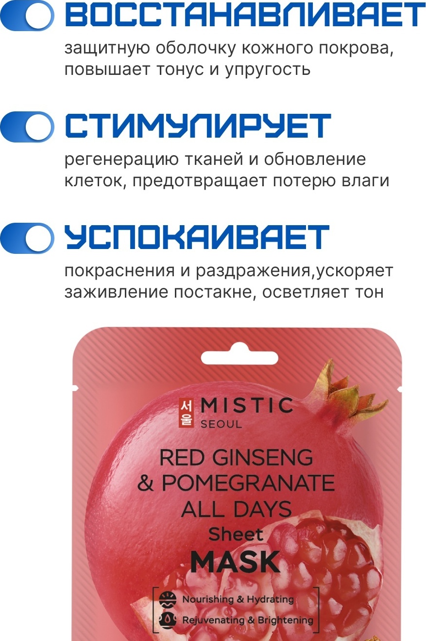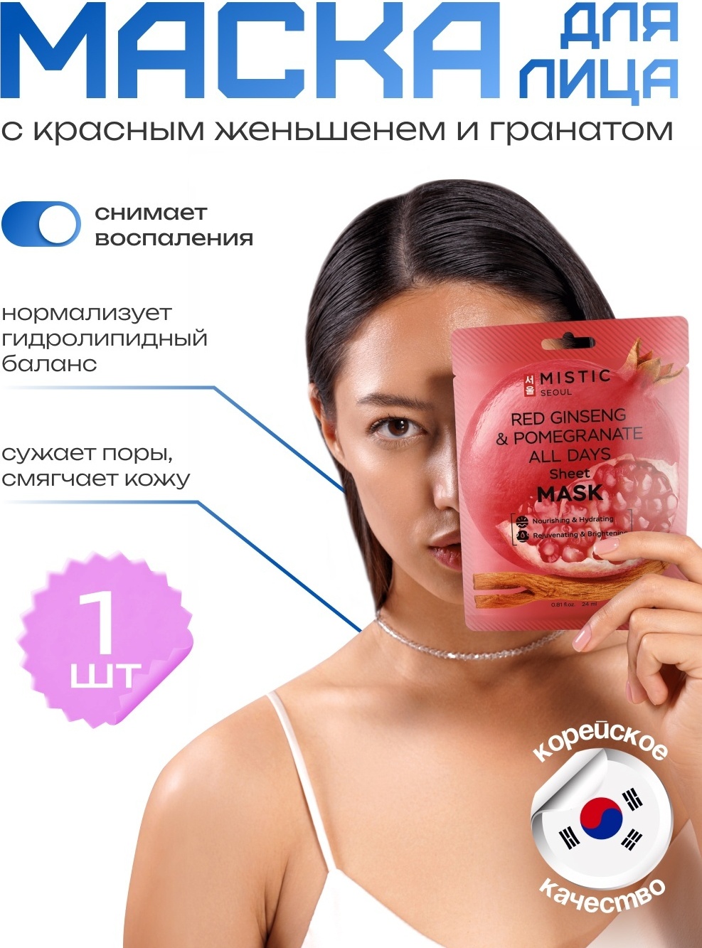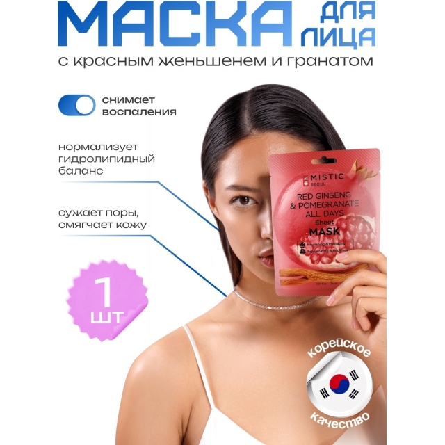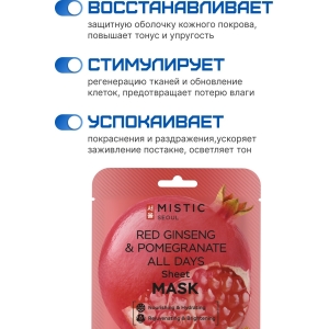 Маска для лица MISTIC тканевая RED GINSENG & POMEGRANATE ALL DAYS Sheet MASK 1 шт