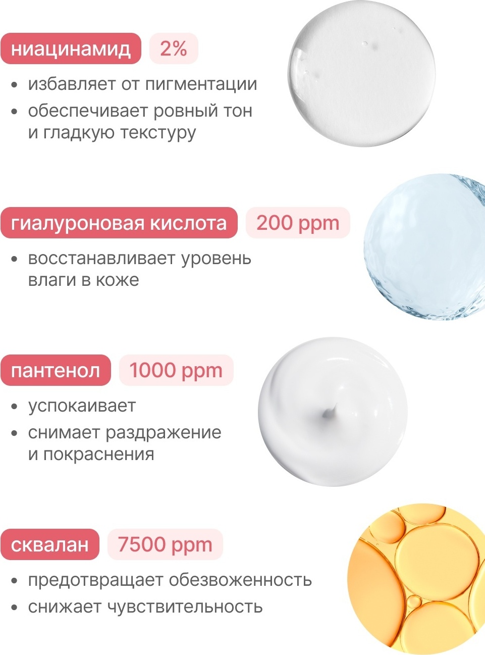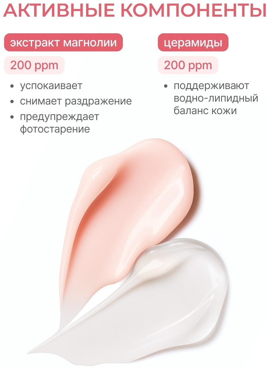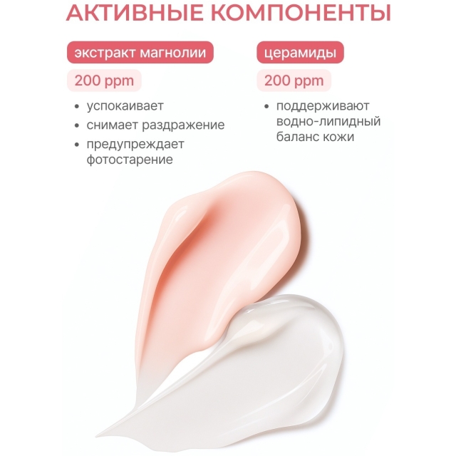 Уникальная гелевая текстура с кремовыми капсулами при смешивании обеспечивают комплексный уход за кожей в ночное время. Интенсивная формула средства направлена на глубокое восстановление кожи. Экстракт магнолии оказывает мощный успокаивающий эффект. Ниацинамид мягко выравнивает тон кожи и устраняет пигментацию. Церамиды помогают восстанавливать защитный липидный барьер кожи. Пантенола ускоряет процессу регенерации, а сквалан помогает предотвратить обезвоженность. Бета глюкан повышает иммунитет кожи. Комплекс гиалуроновых кислот обеспечивает каскадное увлажнение. Ваша кожа напитана, увлажнена и восстановлена