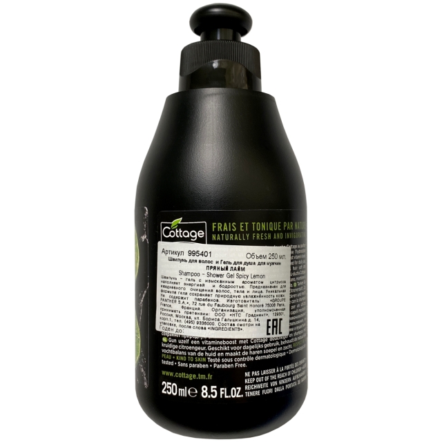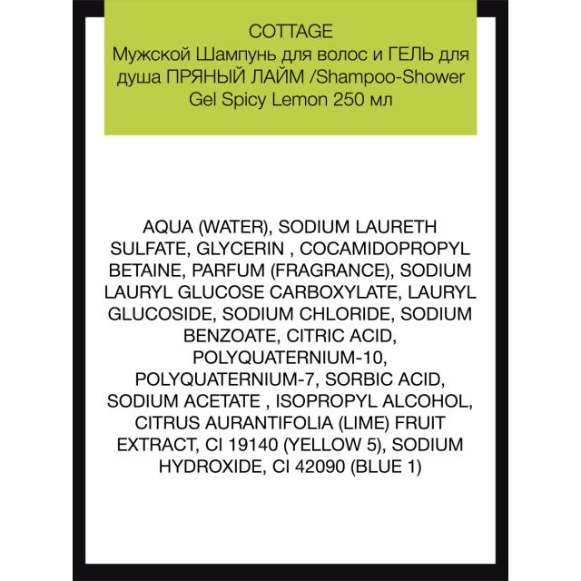 COTTAGE Мужской Шампунь для волос и ГЕЛЬ для душа ПРЯНЫЙ ЛАЙМ