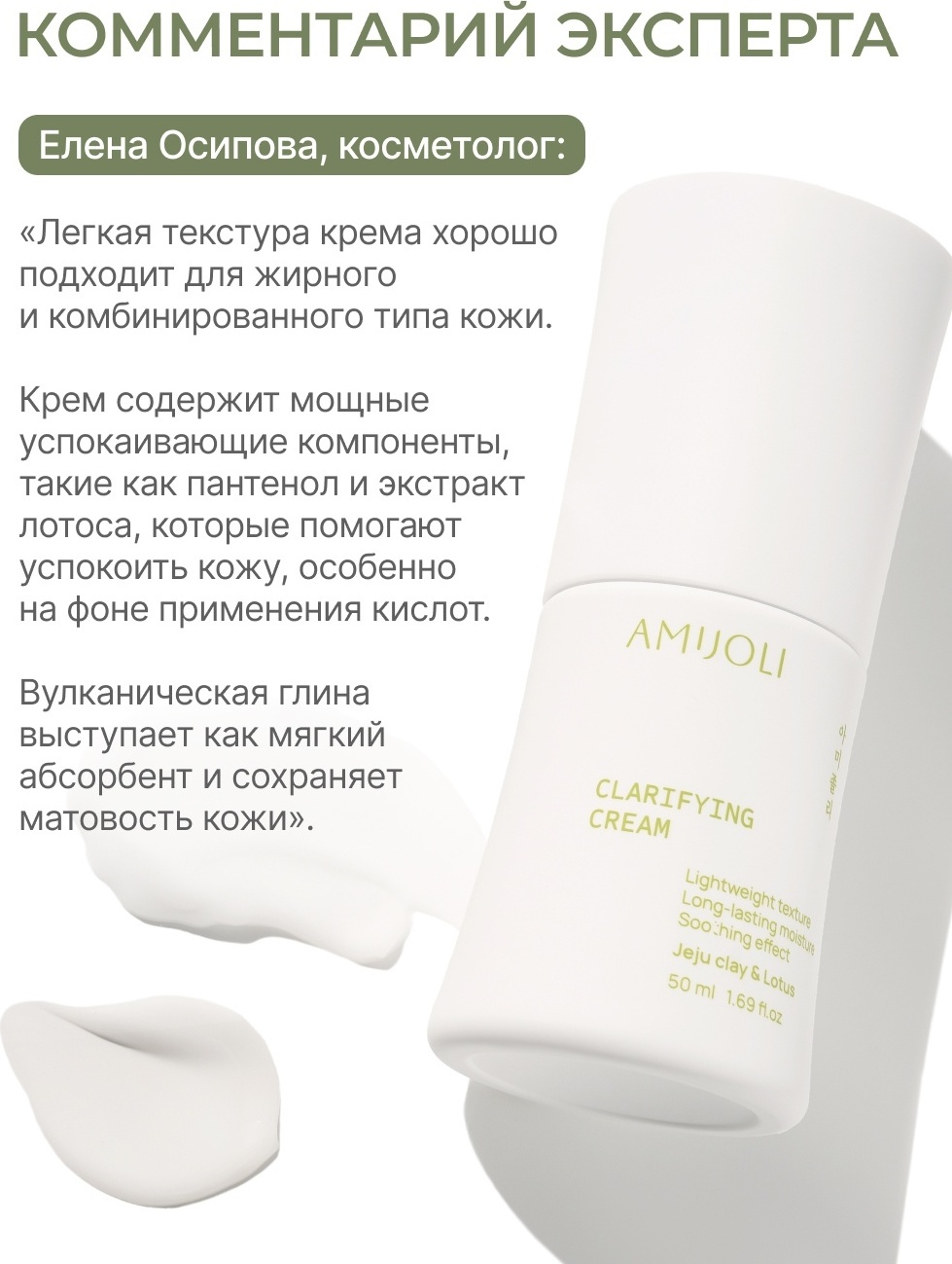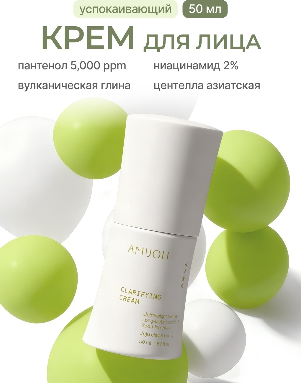 AMIJOLI крем Увлажняющий крем для проблемной кожи c вулканической глиной и экстрактом лотоса Clarifying Cream JeJu Clay&Lotus для лица 50 мл