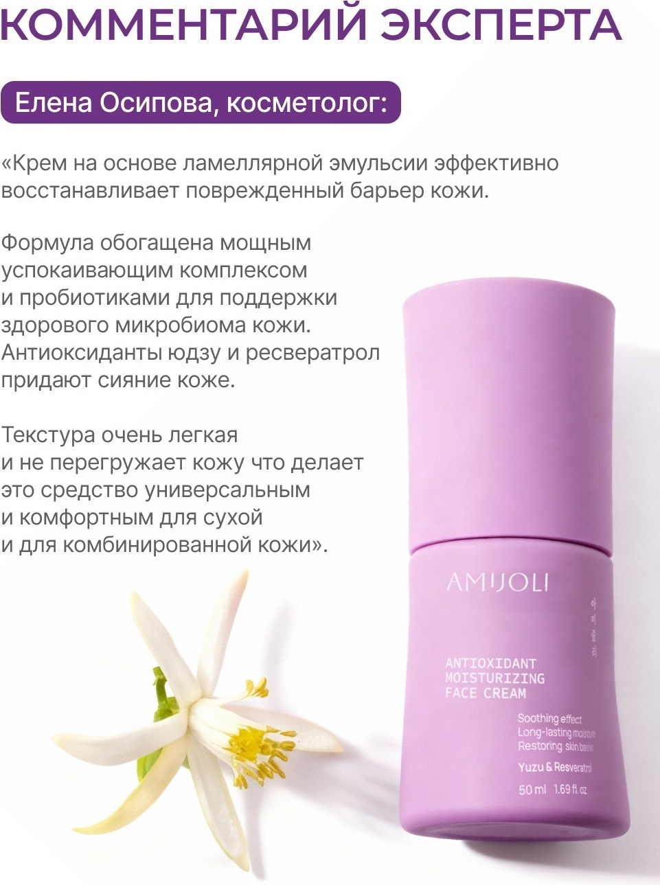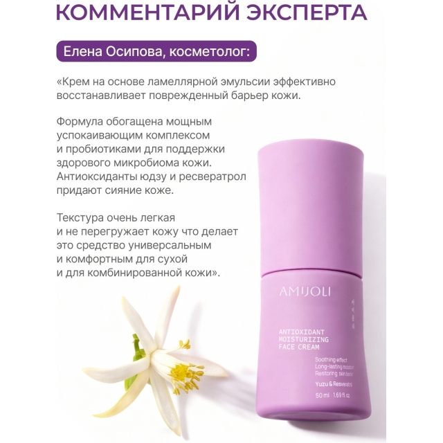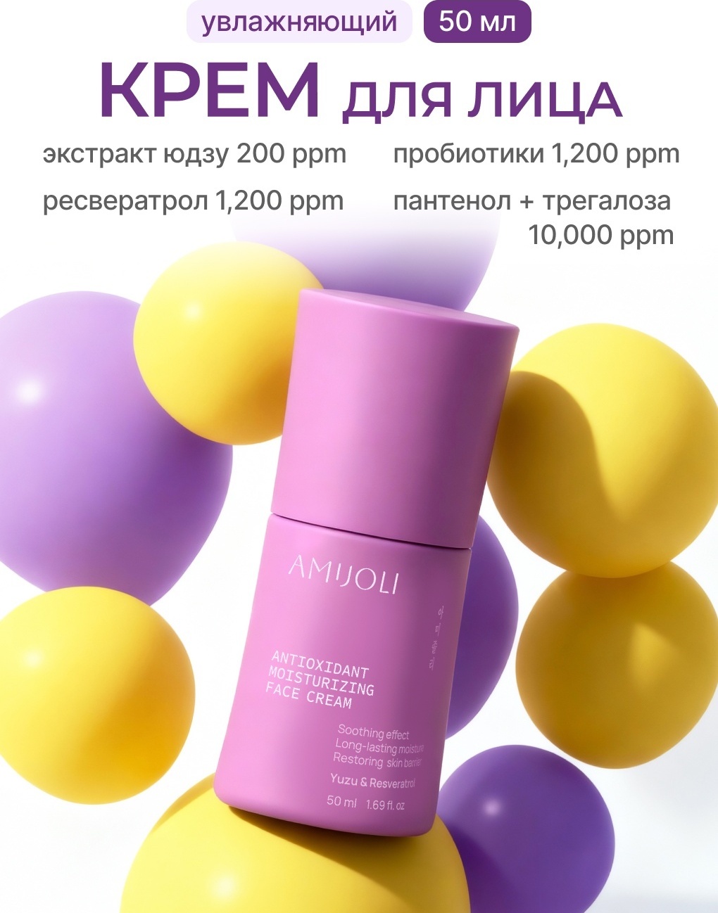 AMIJOLI крем Aнтиоксидантный крем для лица с экстрактом юдзу и ресвератролом-Antioxidant Moistruzing Face Cream для лица, для зоны декольте 50 мл