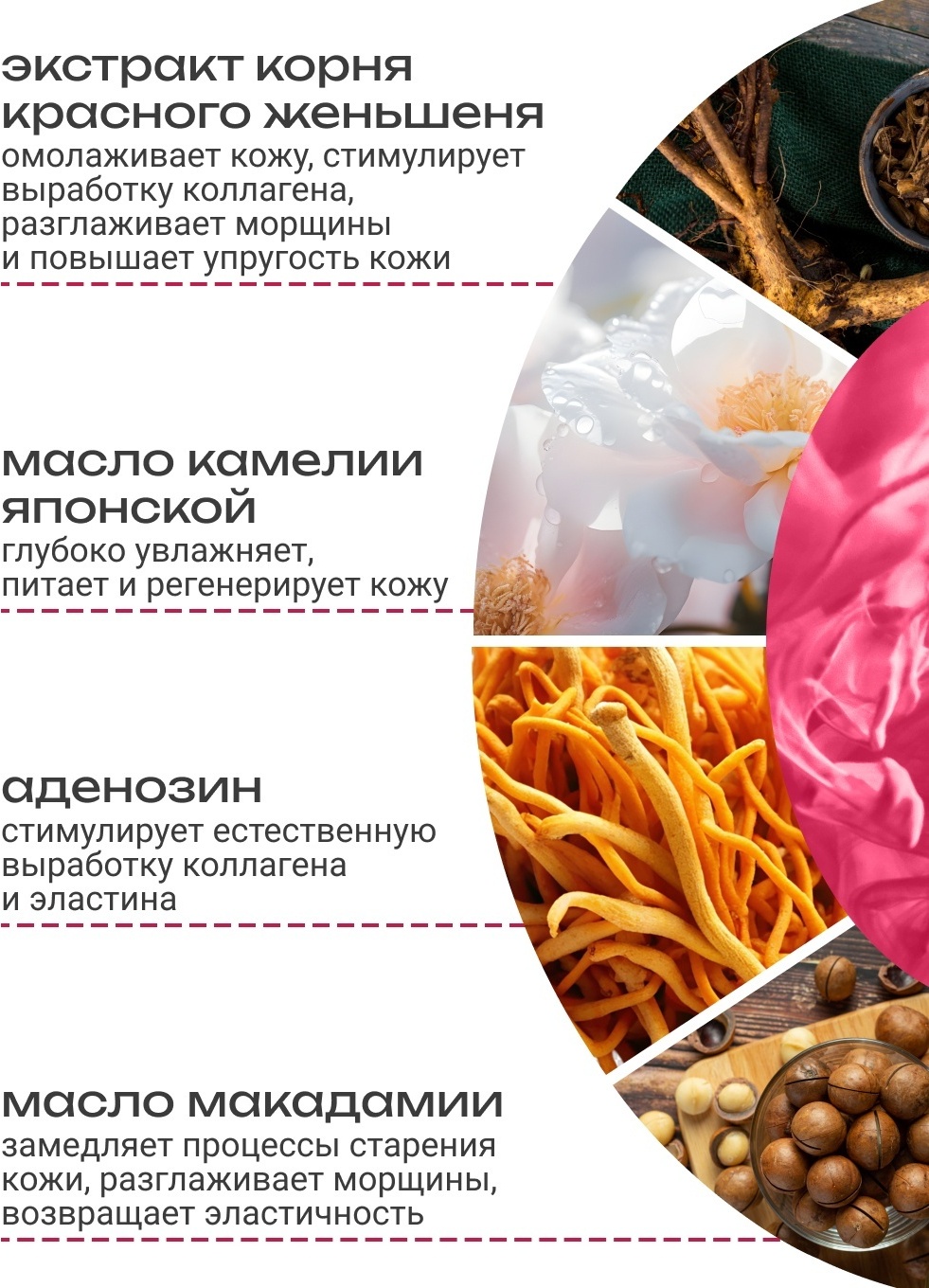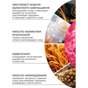 Действие: увлажнение, питание, сияние, выравнивание тона, регенерация, повышение упругости