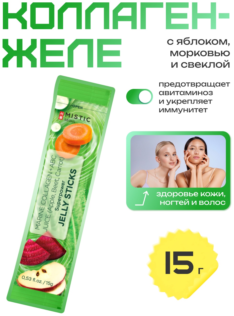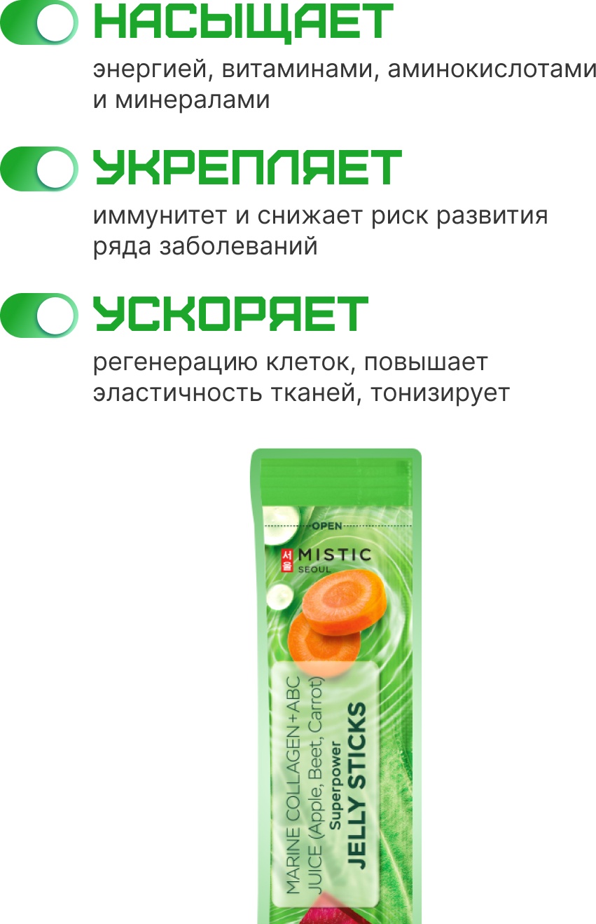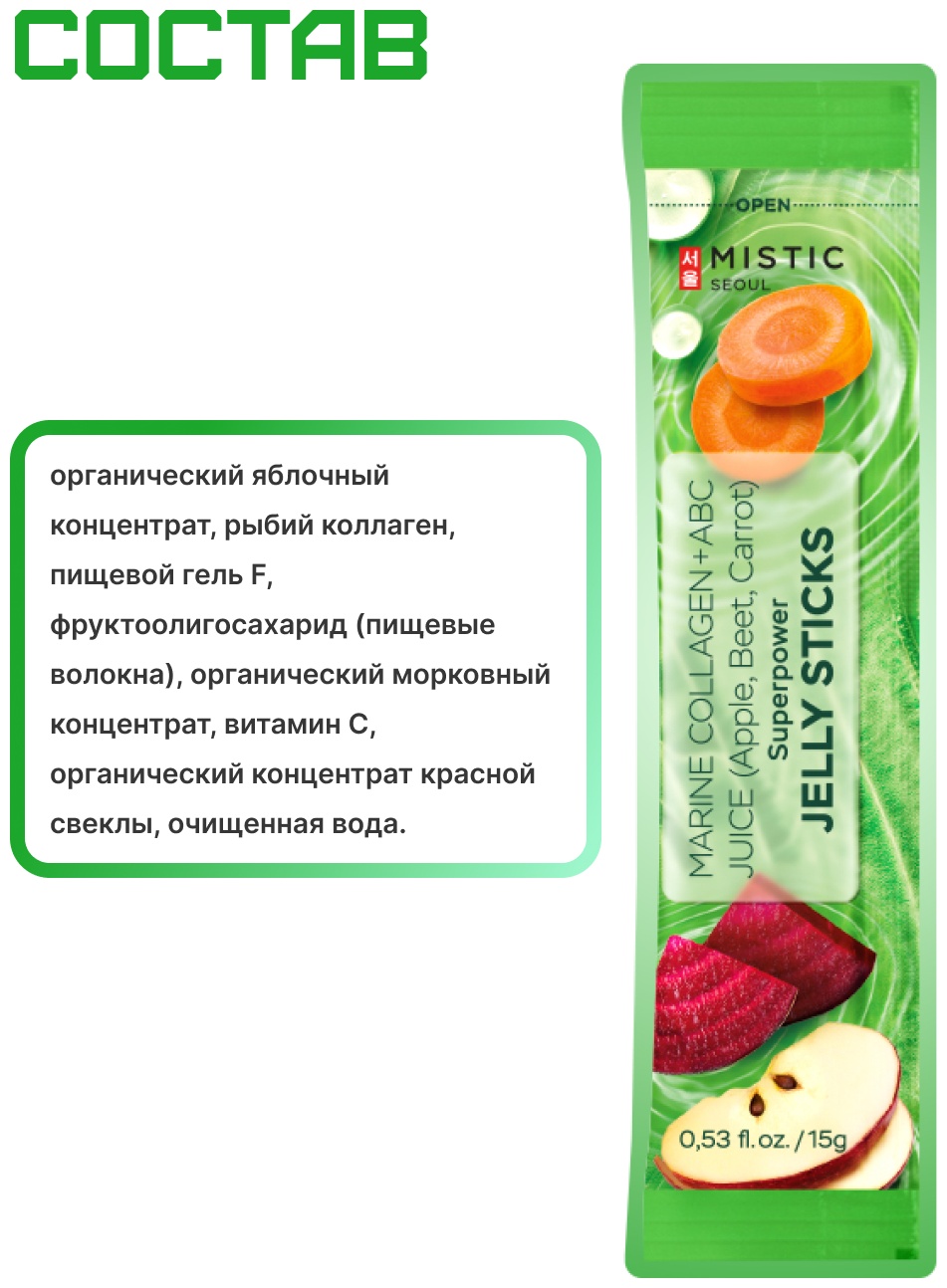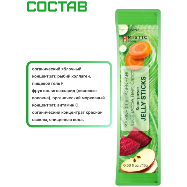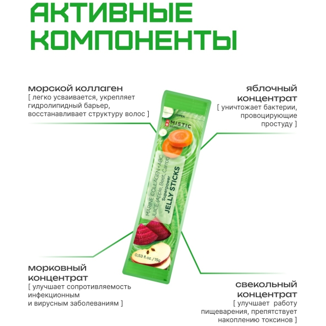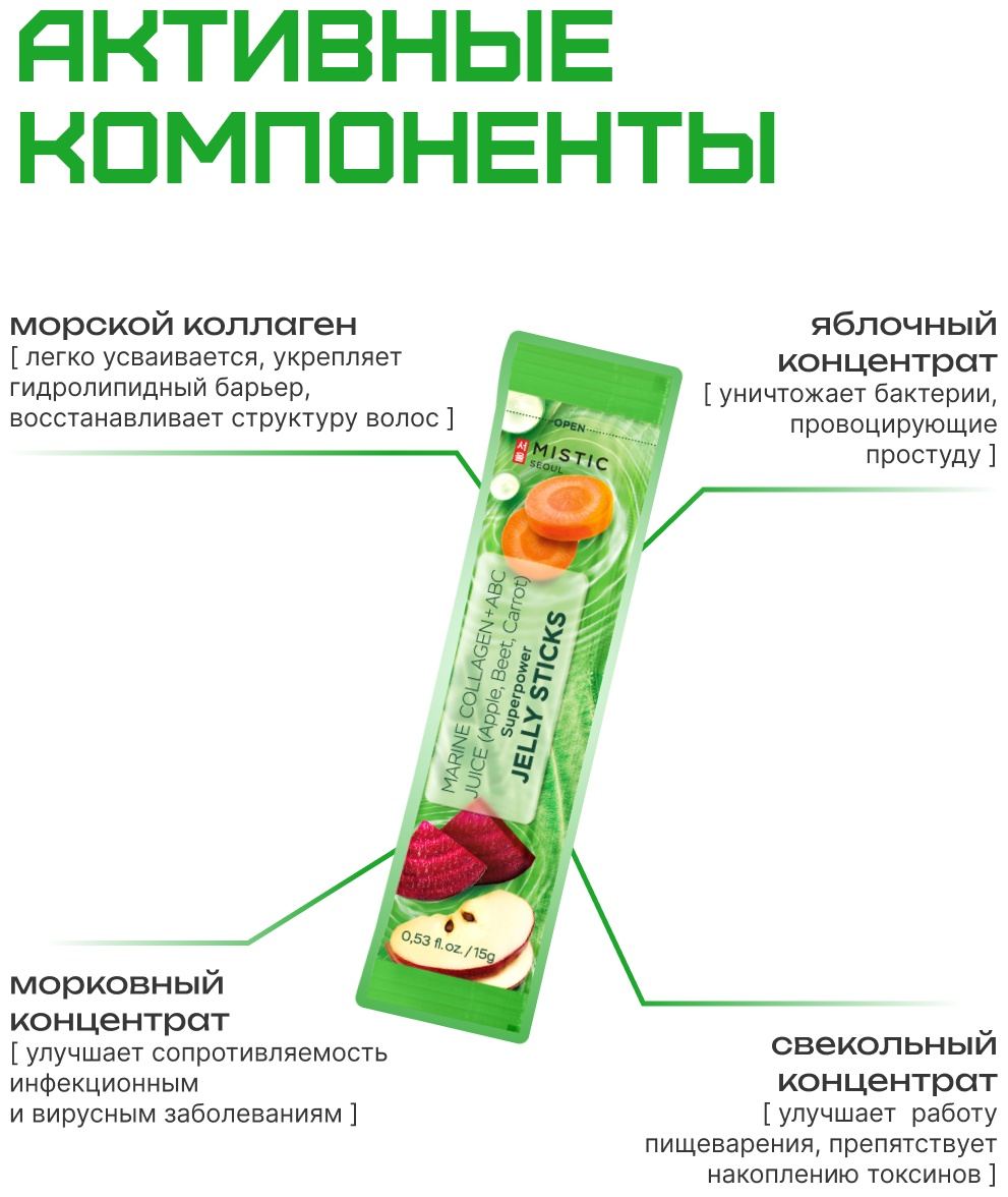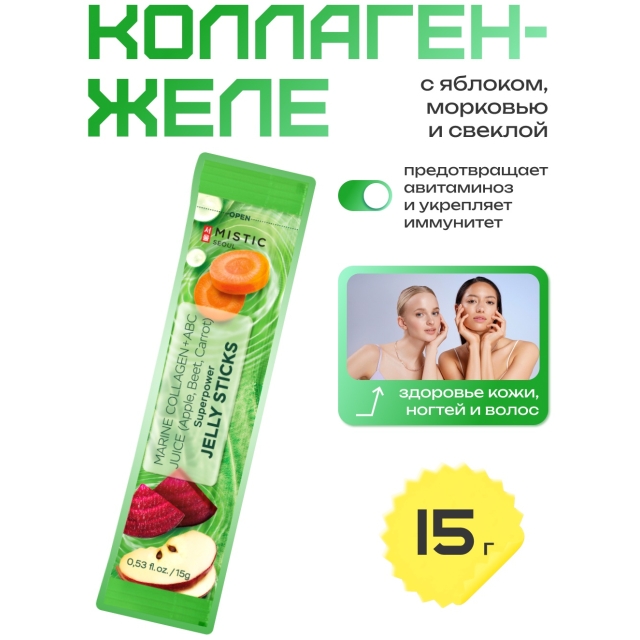 Mistic MISTIC MARINE COLLAGEN + ABC JUICE (Apple, Beet, Carrot) SUPERPOWER JELLY STICKS желе 15