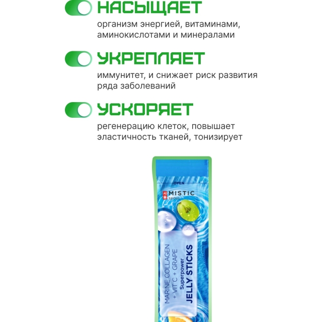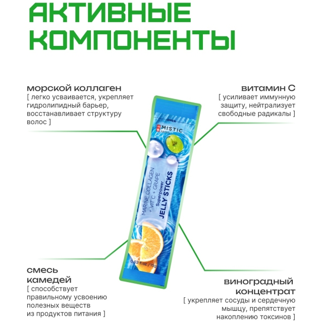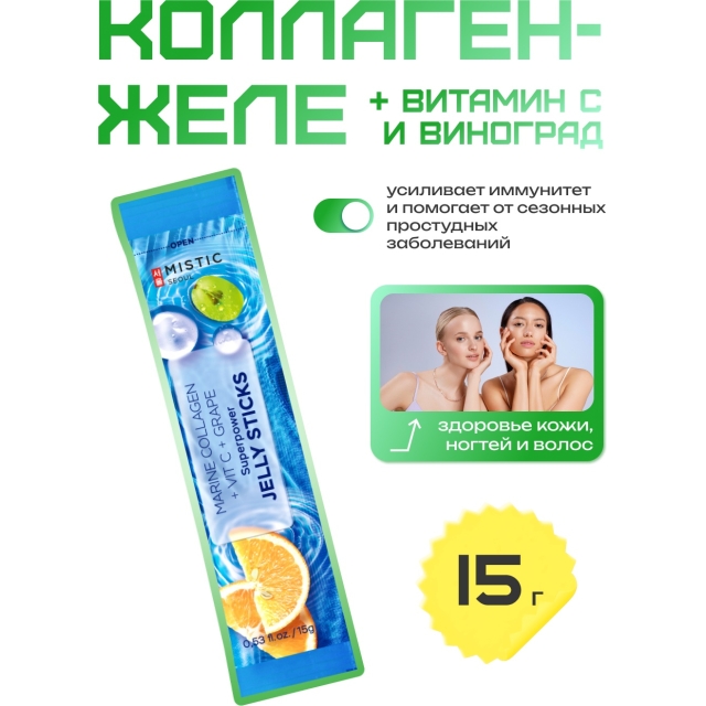Mistic MISTIC MARINE COLLAGEN + VIT C + GRAPE SUPERPOWER JELLY STICKS желе 15