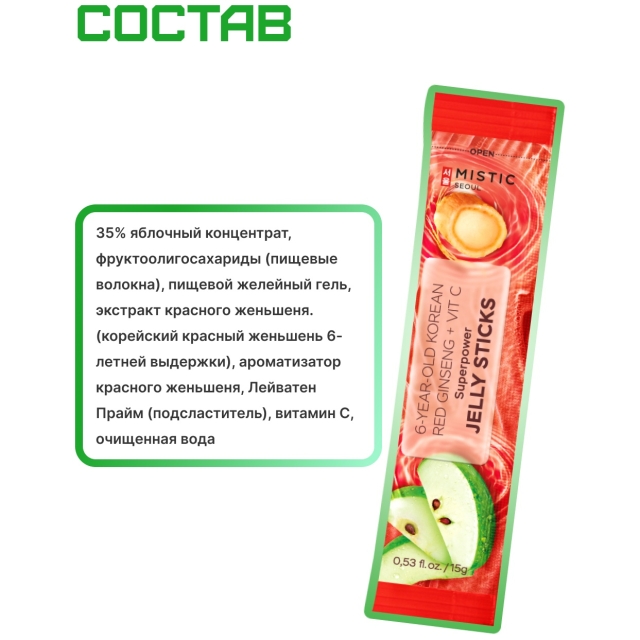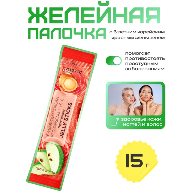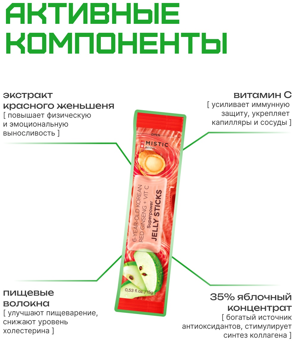 Mistic MISTIC 6-YEAR OLD KOREAN RED GINSENG+VIT C SUPERPOWER JELLY STICKS желе 15