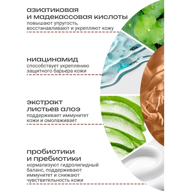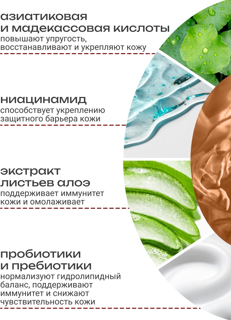 Восстанавливающий ночной крем для лица стимулирует процесс регенерации и поддерживает микробиом кожи. Ниацинамид способствует улучшению барьерной функции кожи. Комбинация пробиотиков и пребиотиков направлена на восстановление поврежденной кожи и поддержание ее иммунитета. Азиатиковая и мадекассовая кислоты оказывают регенерирующее и успокаивающее действия. Ваша кожа восстановлена, обновлена и выглядит отдохнувшей. Способ применения: за 2 часа до сна нанесите небольшое количество крема на очищенную кожу массажными движениями. Сохраняйте упаковку – на ней содержится важная информация.