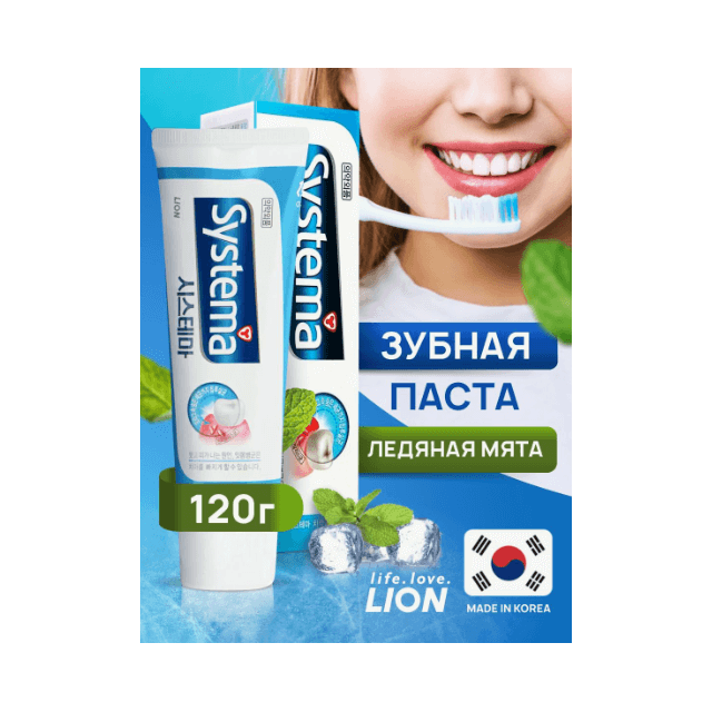 LION. Зубная паста. Systema ice mint alpha, ледяная прохлада, 120 гр