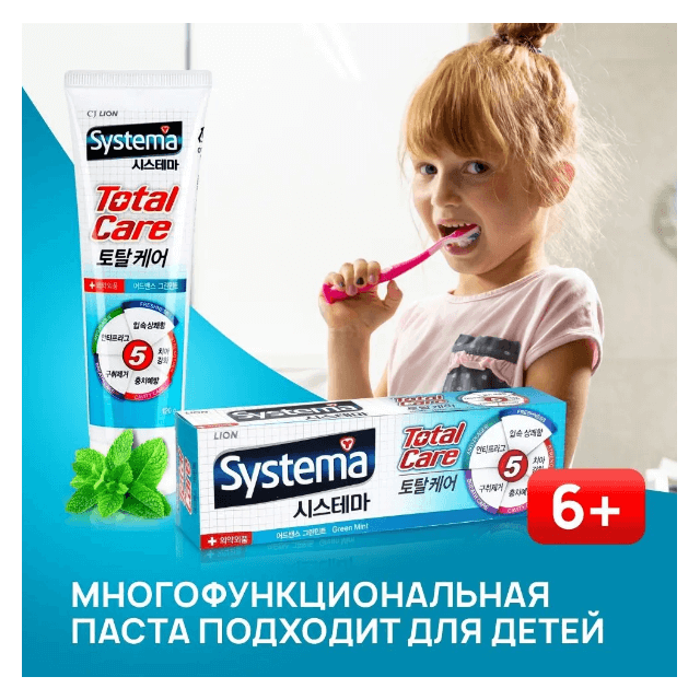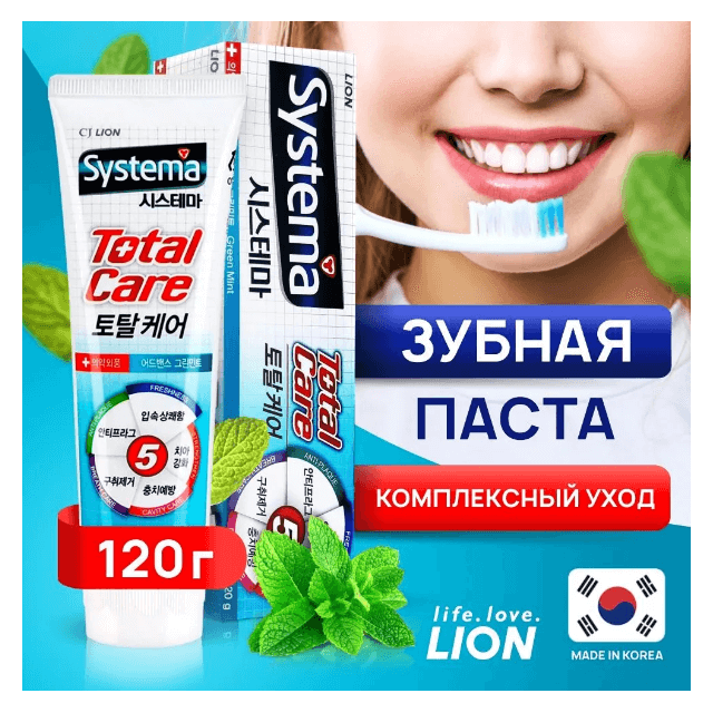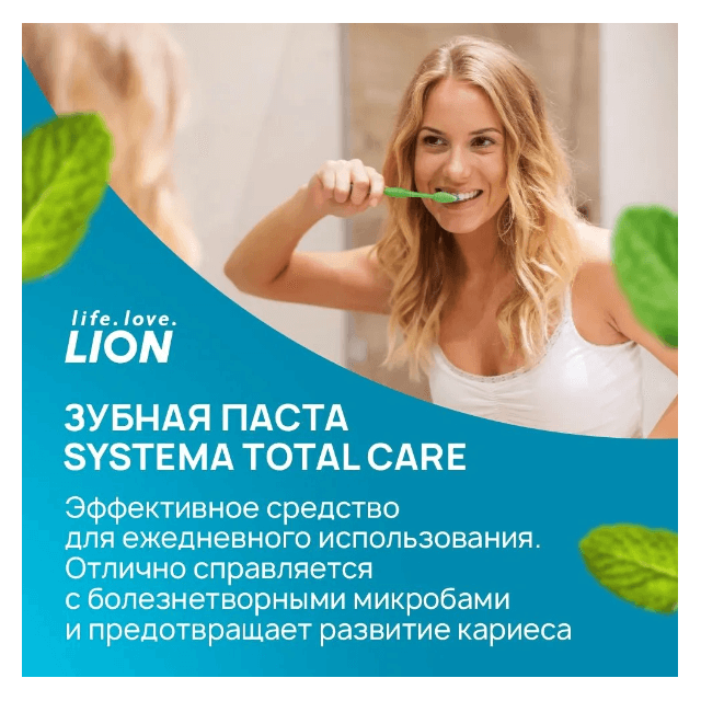 LION Паста зубная Systema TotalTP greenmint 120гр мята