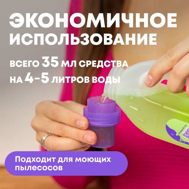 Благодаря эффективной концентрации активных веществ моющее средство экономично расходуется. Оно не требует смывания, не оставляет разводов и делает поверхности идеально чистыми. Жидкость для пола также обладает антистатическим эффектом, что позволяет пыли оседать медленнее, продлевая чистоту полов.Экологичное решение для чистоты полов в вашем доме
