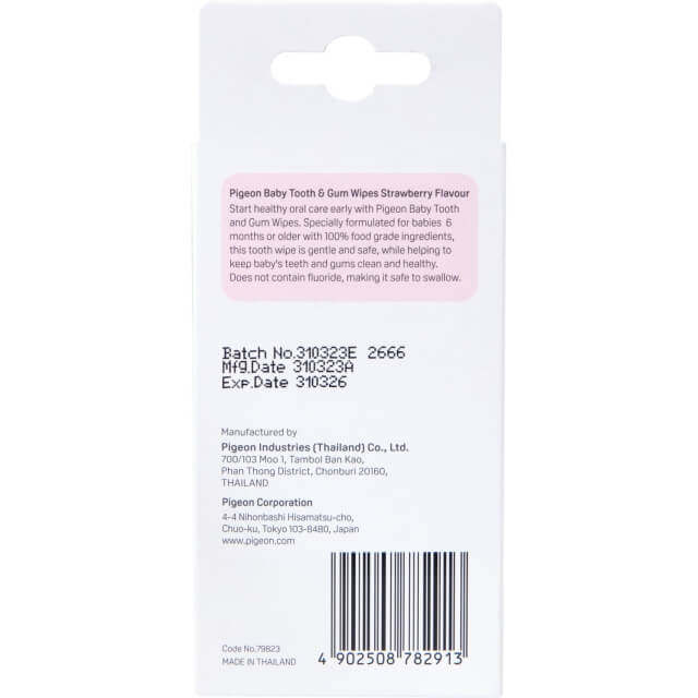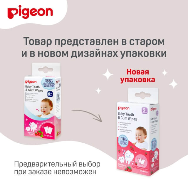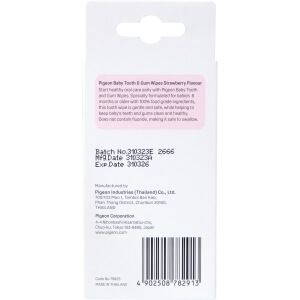 Мягкие и безопасные салфетки помогают сохранить зубы и десна ребенка чистыми и здоровыми. Разработаны специально для детей с 6-ти месяцев из компонентов, которые используются в пищевой промышленности. Подходят для повседневного ухода за полостью рта, но не заменяют обычную чистку зубов. Каждая салфетка в индивидуальной герметичной упаковке-саше. Удобно брать с собой на прогулку или в дорогу. Салфетки не содержат фтора, спирта, красителей и консервантов, пропитка безопасна для проглатывания. В качестве подсластителя используется ксилит, который не образует кислот, провоцирующих кариес. С ароматом клубники. Для здоровья зубов Pigeon рекомендует: • Проводить ежедневную чистку молочных зубов после каждого приема пищи для предотвращения появления кариеса • Проходить медицинский осмотр у стоматолога раз в полгода