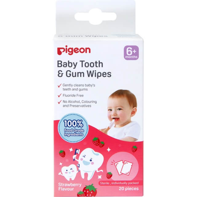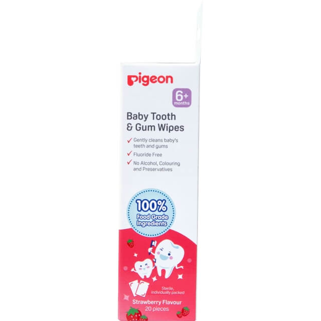 PIGEON Салфетки для чистки молочных зубов с ароматом клубники PIGEON Baby Tooth & Gum Wipes Strawberry, 20 шт