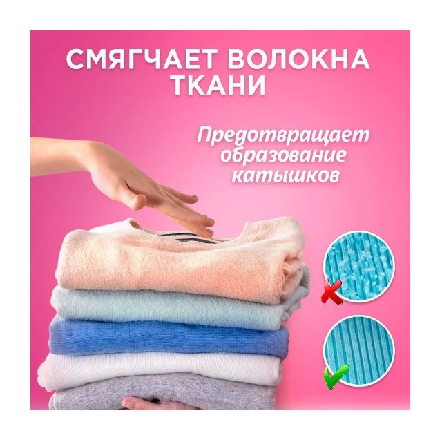 Частицы кондиционера проникают глубоко в ткань, смягчают волокна и устраняют статическое электричество, что облегчает процесс глажки. Применение кондиционера также предотвращает появление катышков и ворса, сохраняя ткань в идеальном состоянии.