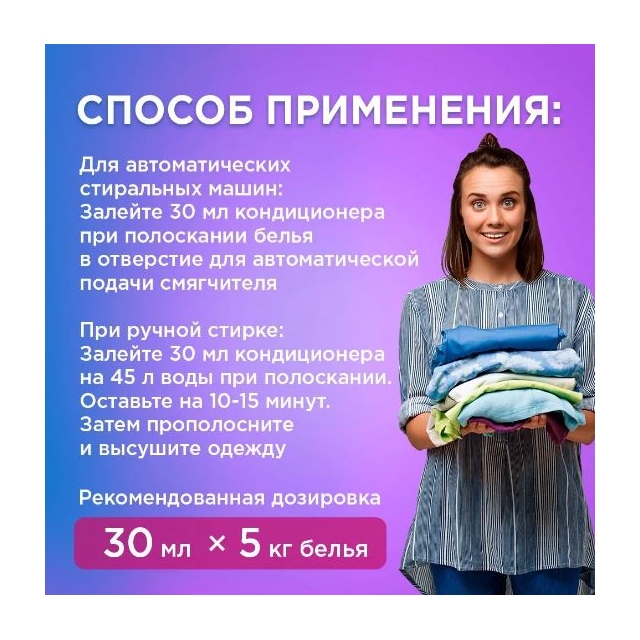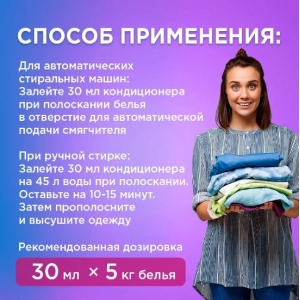 - Для автоматической стиральной машины: добавьте 30 мл кондиционера на 3 кг белья.
