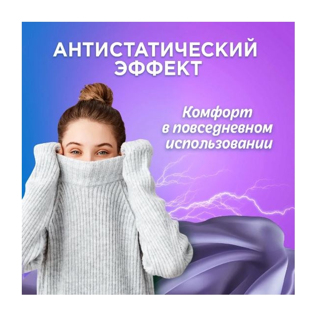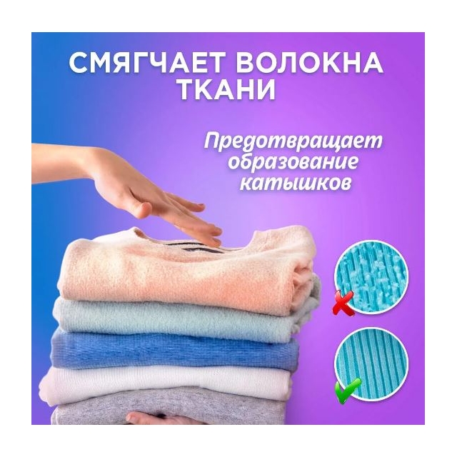 - Частицы размягчающего состава проникают глубоко в ткань, смягчают волокна, устраняют статическое электричество и облегчают глаженье.