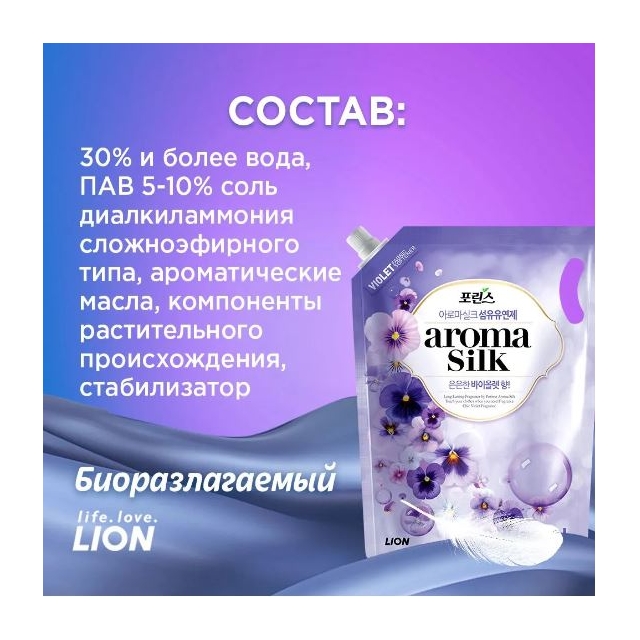 Кондиционер Porinse Aroma Capsule подарит вашим вещам нежный цветочный фиалковый аромат и эффективно устранит неприятные запахи, такие как пот и табак.