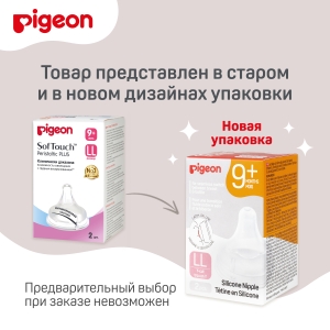"Соска силиконовая для детской бутылочки Pigeon SofTouch Peristaltic PLUS размер LL (9+мес.), 2шт Соска запасная к бутылочке для кормления Pigeon разработана специально для младенцев на грудном вскармливании на основе научно-практических исследований лаборатории Pigeon. Создана в поддержку грудного вскармливания. Не вызывает путаницы сосков. Уникальная конструкция соски позволяет воспроизводить естественные механизмы сосания груди матери. Прошла клинические исследования (НЦЗД РАМН, 2013г.). Соска изготовлена из очень мягкого, эластичного и плотного силикона, уникальная конструкции соски стимулирует естественное сосание. Матовая текстурированная поверхность способствует надежному захвату соски. Размер L (6+мес.). Запатентованная вентиляционная система способствует равномерному поступлению молока. Снижает риск возникновения колик. Не содержит Бисфенол-А. Не рекомендуется использовать бутылочку как заменитель груди в период налаживания кормления грудью. Подходит для всех бутылочек Pigeon с широким горлышком и поильнков MagMag шаг 2. Если малыш привык к одной определенной соске, смена соски может вызвать протест. Рекомендуется использовать одновременно две или более соски. Для предотвращения изнашивания сосок их следует заменять раньше, чем в этом возникнет необходимость, вне зависимости от частоты их применения.