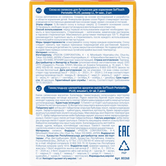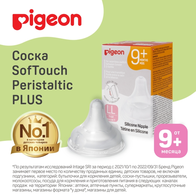 Pigeon. Соска силиконовая для детской бутылочки Перистальтик Плюс размер LL (9+мес.)