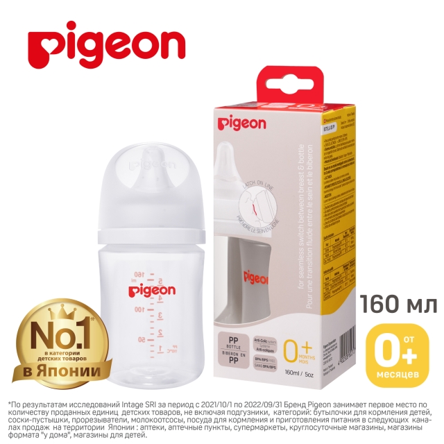 Pigeon. Бутылочка для кормления Перистальтик Плюс, PP 160 мл
