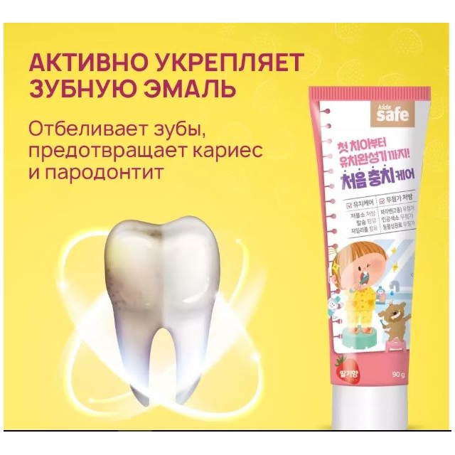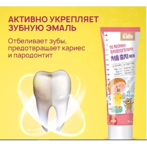 Детская зубная паста Kids Safe от 3-х до 12 лет (со вкусом клубники), Cj Lion Предотвращает появление кариеса и укрепляет зубную эмаль. Мягко освежает, устраняя неприятный запах и надолго сохраняя чистоту полости рта. Для получения вкуса использованы компоненты растительного происхождения. Обладает пониженным содержанием фтора, что делает зубную пасту абсолютно безопасной для детского здоровья.