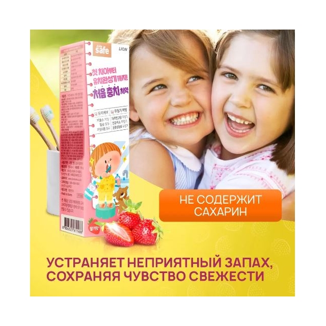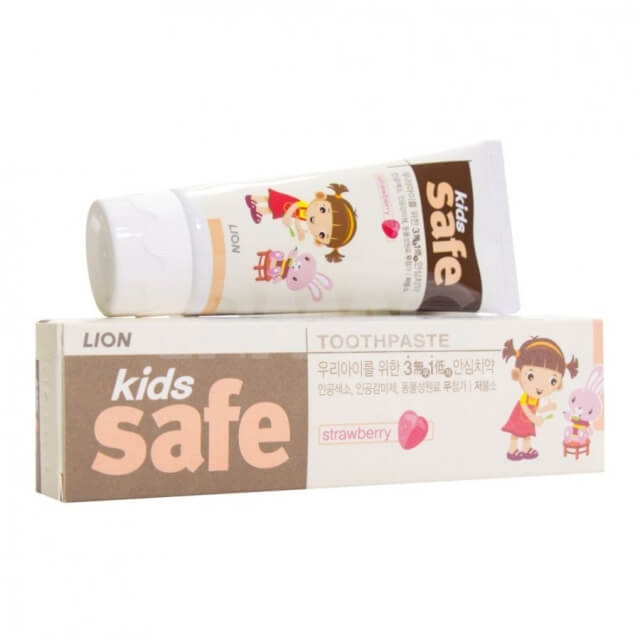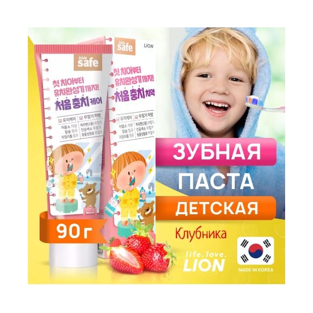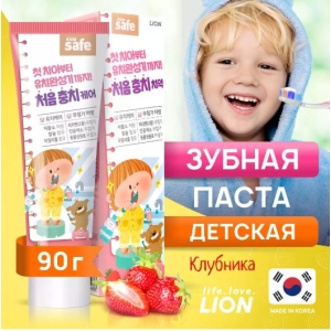 LION. Детская зубная паста Kids safe strawberry, клубника, 90 гр.