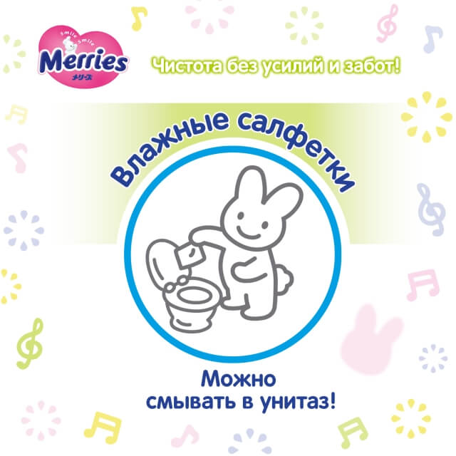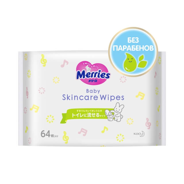 Детские влажные салфетки «Merries» предназначены для вытирания попки малыша. Их также можно использовать для очищения рук и тела. Имеют слабую кислотность, как и кожа человека. Не содержат ароматизаторов и спирта. Растворяемые детские влажные салфетки Merries, которые можно выбрасывать в унитаз.