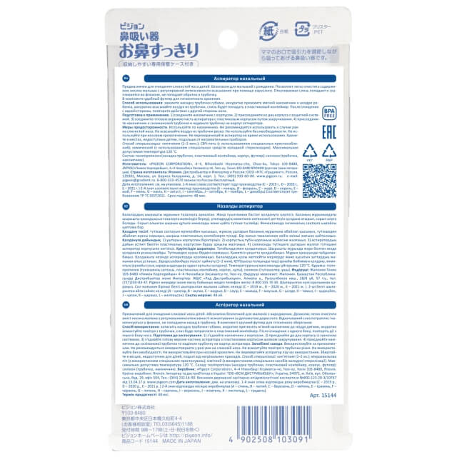 Легкое, безопасное и деликатное очищение слизистой носа детей с рождения. Аспиратор разработан совместно с ведущими врачами-отоларингологами Японии. Откачиваемая слизь попадает и скапливается во флаконе, не попадает обратно в трубочку. Мягкий U-образный наконечник не соприкасается со слизистой носа. Позволяет без труда очистить содержимое носика малыша при помощи взрослого. Благодаря мягкой силиконовой трубочке возможно использование под любым углом. Удобство и безопасность в использовании. Интенсивность очищения регулируется с помощью всасывания через силиконовую трубочку. Нет необходимости в использовании дополнительных фильтров. Не содержит Бисфенол А. В комплекте с футляром для гигиеничного хранения. Во избежание попадания слизи через трубочку необходимо чтобы корпус аспиратора располагался вертикально, ниже носика малыша.