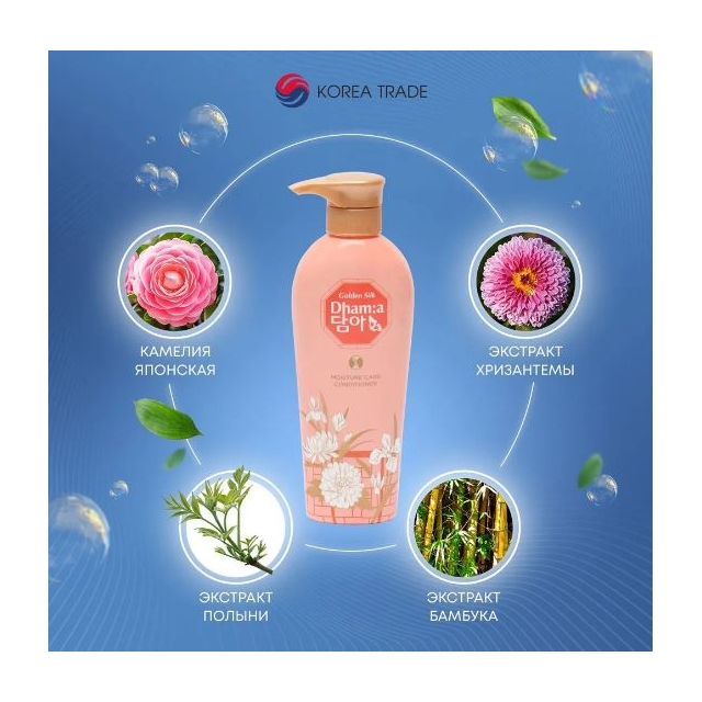 Кондиционер для нормальных, сухих и ломких волос Dhama. Кондиционер на основе натуральных компонентов с освежающим фруктово-цветочным ароматом разработан специально для сухих и ломких волос, утративших природный блеск и эластичность. Компоненты шелка в золотом тутовом шелкопряде, содержащем белок серицина и аминокислоты шелка, обеспечивают поступление влаги в сухие и ломкие волосы, делая их более увлажненными и мягкими. Содержит растительный экстракт аира благовонного, бамбука и цветка хризантемы, которые обеспечивают комфорт и здоровья волос и кожи головы, делая волосы послушными и здоровыми.