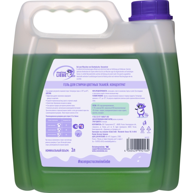 MEINE LIEBE Гель для стирки цветных тканей, концентрат (3 л канистра)