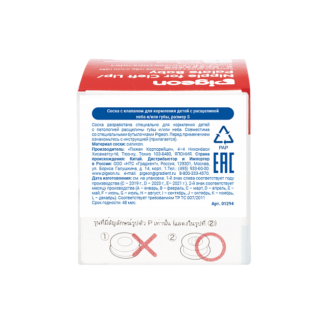 PIGEON Соска S c клапаном для кормления детей с расщелиной неба и/или губы 1шт.