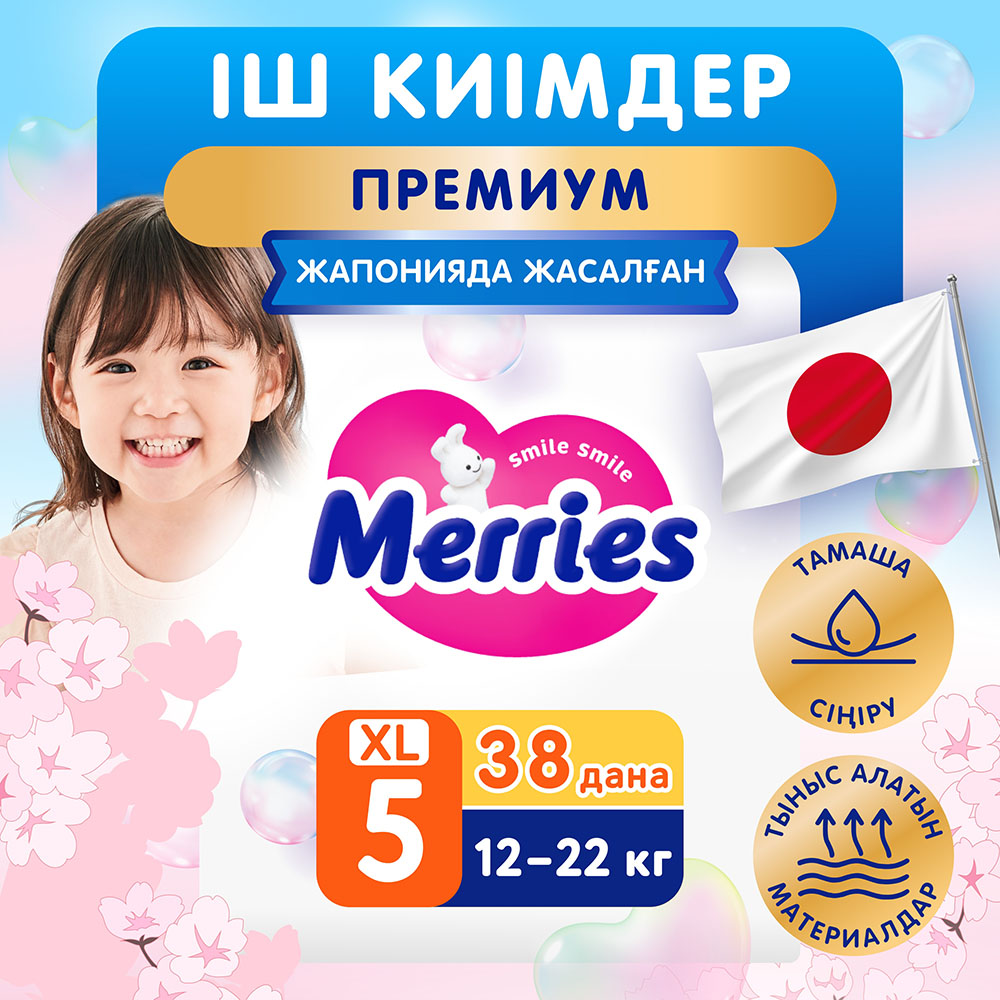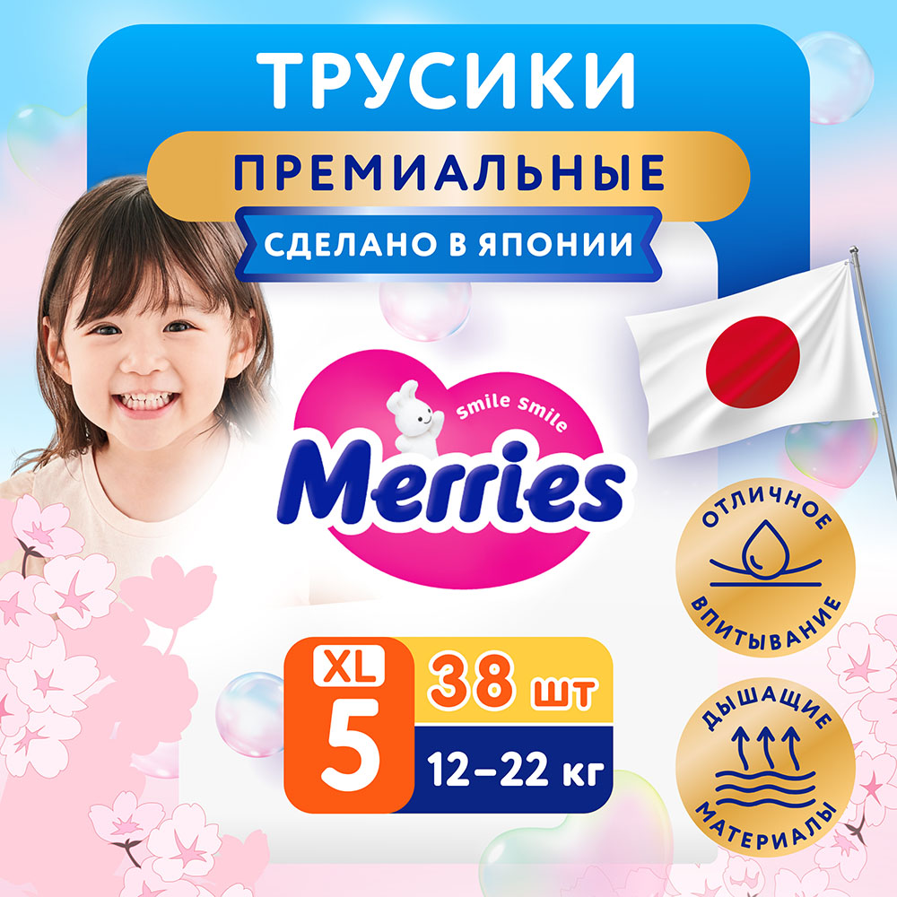 MERRIES Трусики-подгузники для детей размер XL 12-22 кг 38 шт